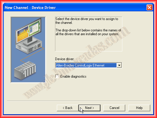 We assign a name that interests us; I have called it SoftLogix. Next, we will specify the driver we are going to configure, from the various ones related to Allen-Bradley; for our purpose this time we select ControlLogix Ethernet.