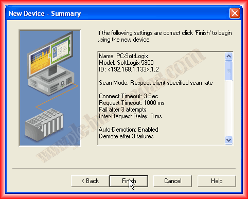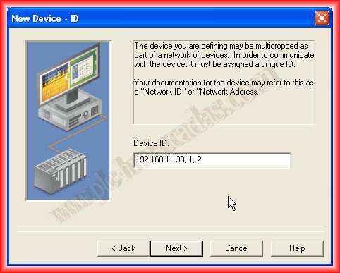 The next step is one to take into account; the first thing we need to provide is the IP address of the Ethernet module of the SoftLogix, followed by a 1, which refers to the backplane, and finally identify the slot number where the CPU is located, in my case slot 2.