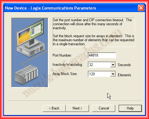 In the next steps, in my case, I did not have to make any changes; the default port is 44818, the Watchdog time is by default 32, and I do not have any array created with more than 120 elements, so I leave it as is.