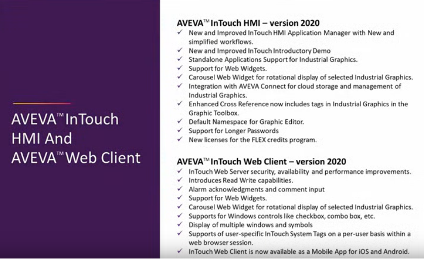 AVEVA Intouch 2020 is now available, and these are some of the new features it includes. (Image taken from the video AVEVA System Platform 2020 Release)