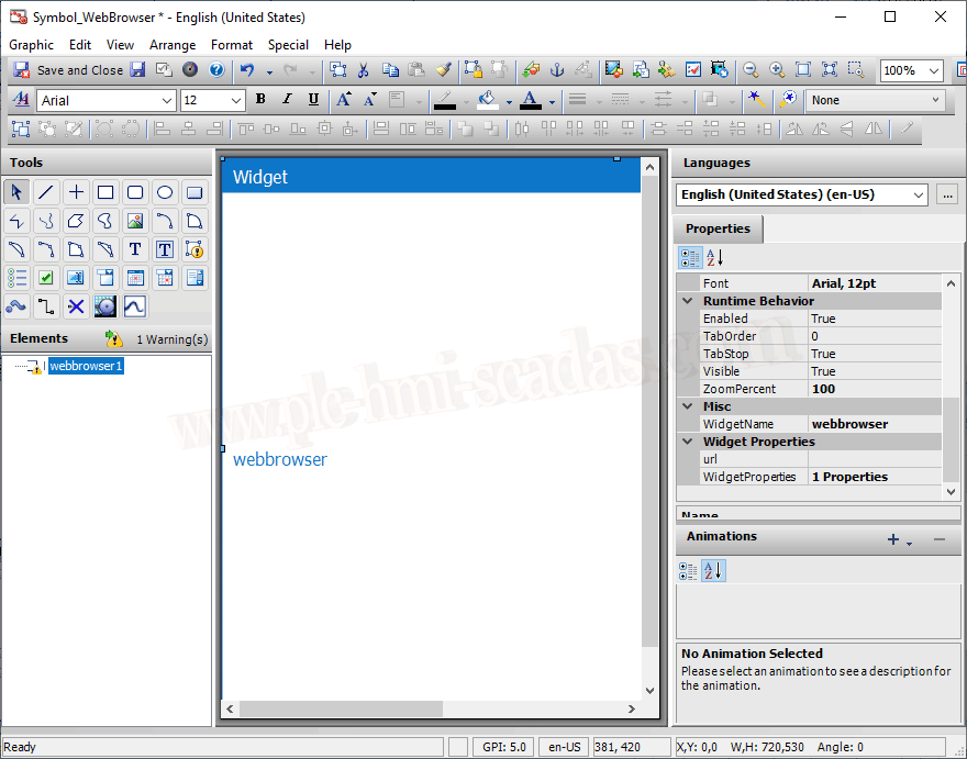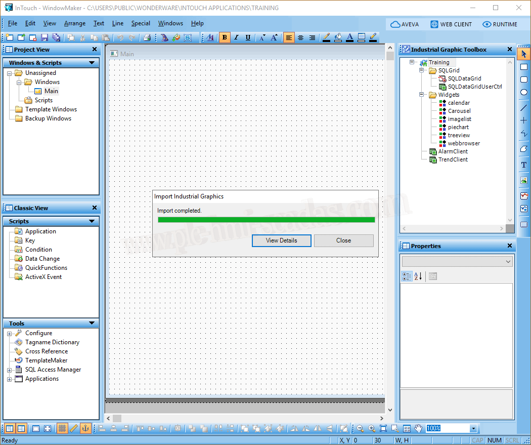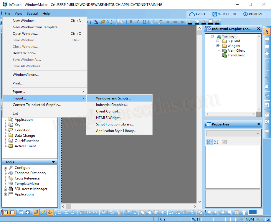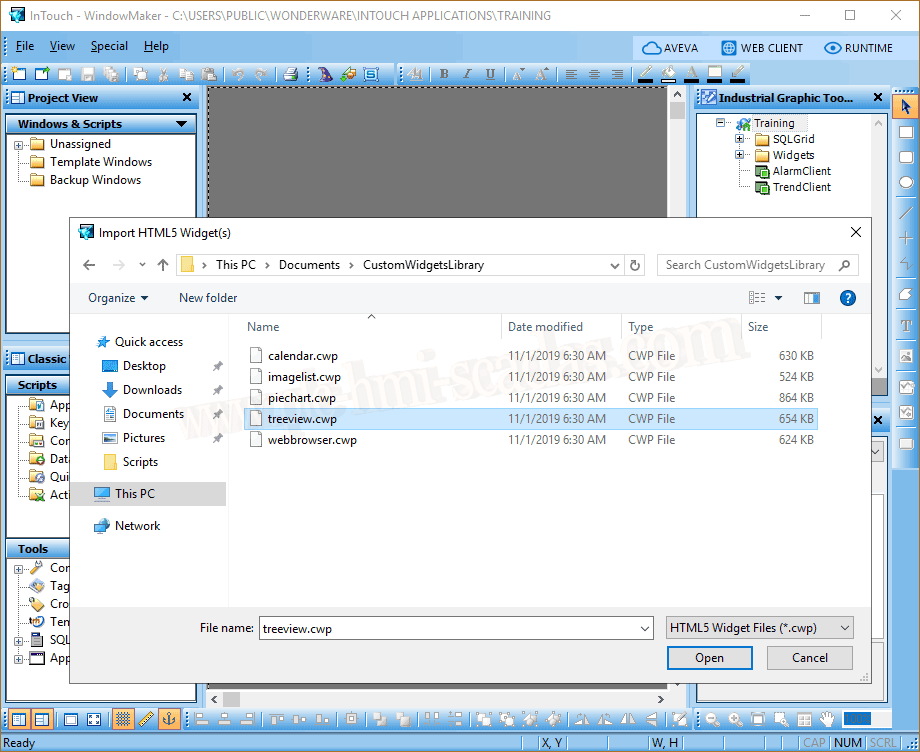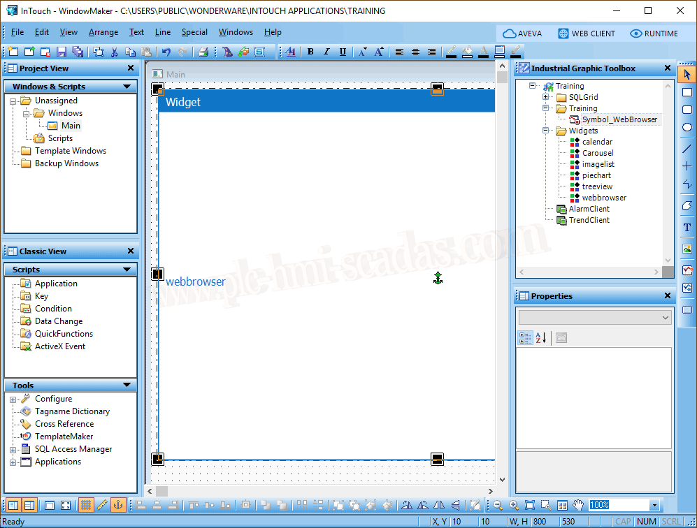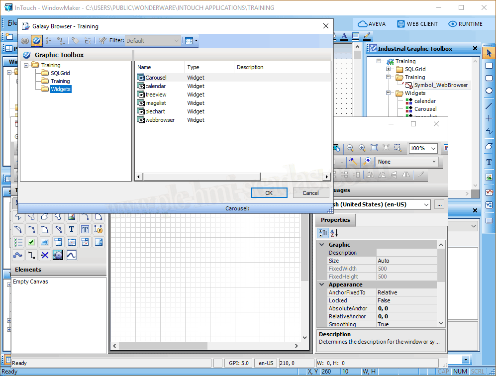 Once our Intouch is started, by default there is a Widgets directory within Industrial Graphic, where the Carousel Web Widget is included.