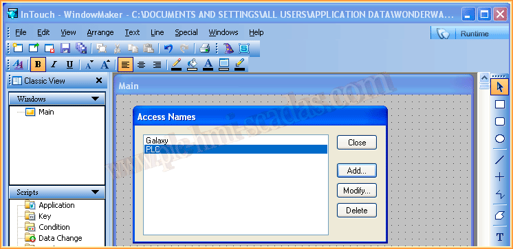 And to not extend this practice too much, since the same has been seen in other Intouch practices but with a different configuration of the Access Name, we insert some texts that we associate with the visualization of the variables and run the Runtime to check its operation.