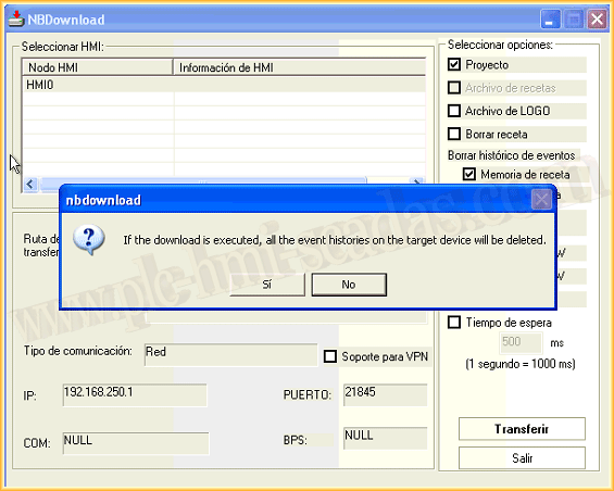 The following pop-up window appears, and we select the options that interest us; for this example, it would be the default configuration. We click transfer, and a confirmation window will appear, confirming that we do.