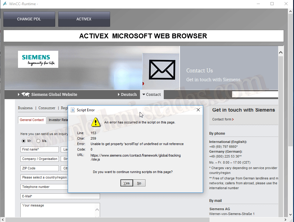 Recently in the Siemens forum, there was a question about the WinCC WebBrowser Control, where the WinCC control, when opening a web page, gave script execution errors, which will be discussed later.