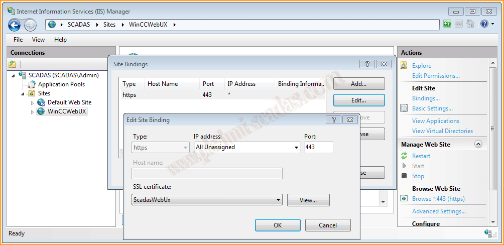 And what we are going to do is edit the site, and add the certificate that we created earlier, for this in SSL certificate, we select ours and Ok. With these steps we have finished configuring our new website.